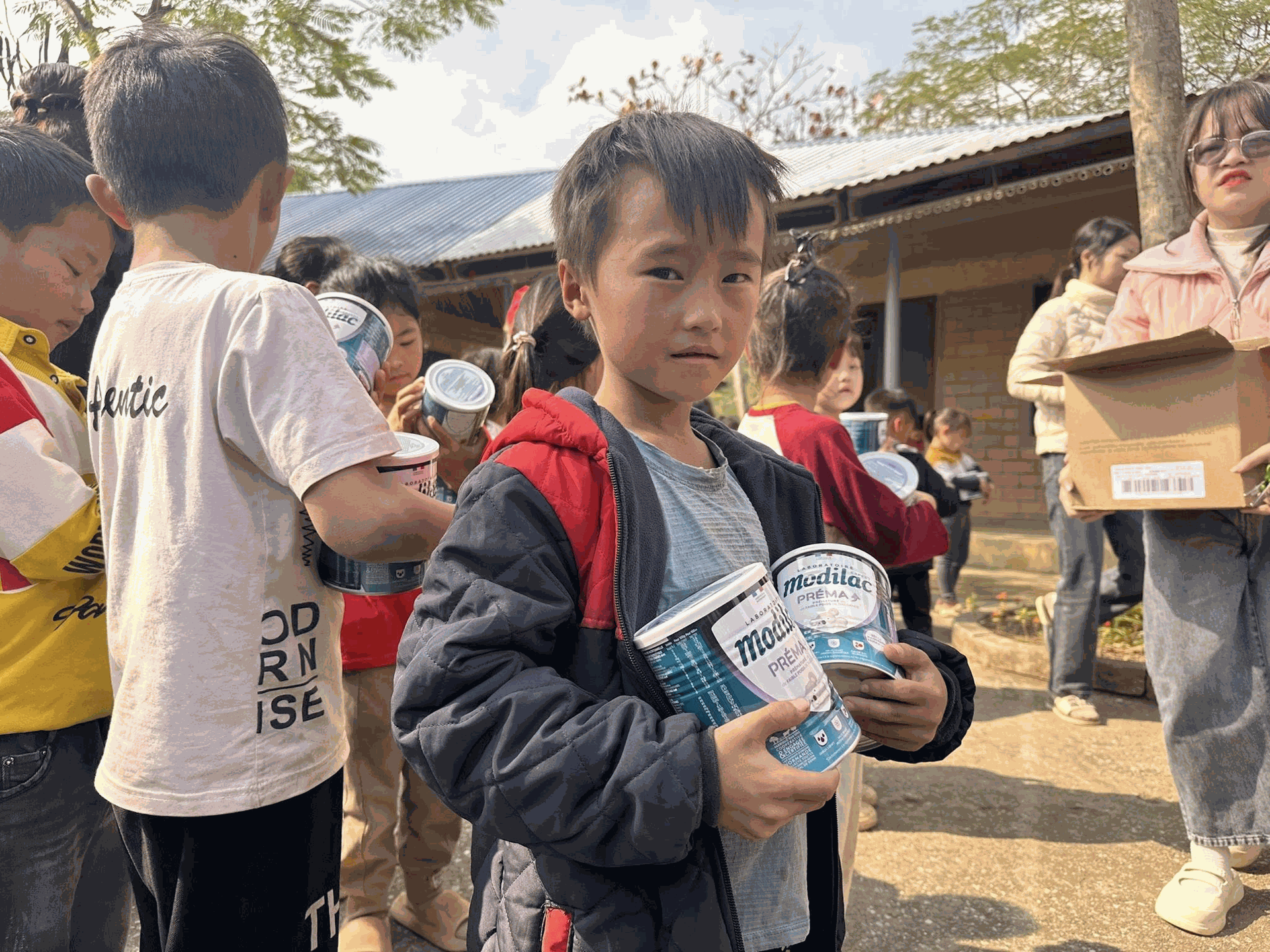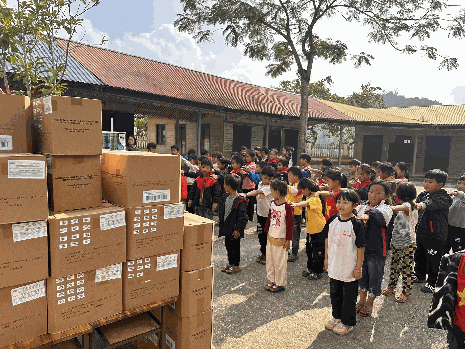 Toàn bộ số sữa đã được vận chuyển và trao tận tay các em học sinh, góp phần cải thiện bữa ăn hằng ngày, tiếp thêm năng lượng để các em yên tâm học tập và phát triển toàn diện.